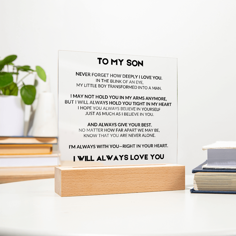 Create a moment that you and your son will treasure forever. The Acrylic Plaque With LED is more than just an accessory—it’s a heartfelt way to remind him just how much he means to you.