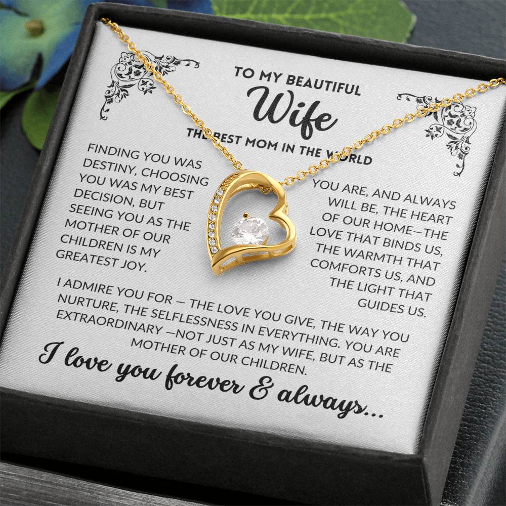 Heartfelt Message Card: " Finding you was destiny, choosing you was my best decision, but seeing you as the mother of our children is my greatest joy. You are, and always will be, the heart of our home—the love that binds us, the warmth that comforts us, and the light that guides us. I admire you for the love you give, the way you nurture, the selflessness in everything. You are extraordinary —not just as my wife, but as the mother of our children. I love you forever & always..."
