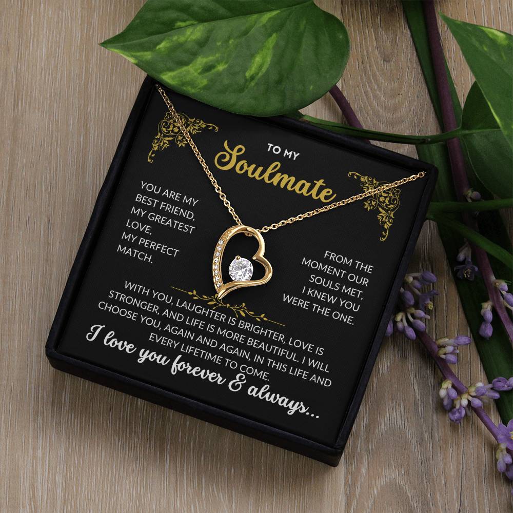 Heartfelt Message Card: "You are my best friend, my greatest love, my perfect match. From the moment our souls met, I knew you were the one. With you, laughter is brighter, love is stronger, and life is more beautiful. I will choose you, again and again, in this life and every lifetime to come."